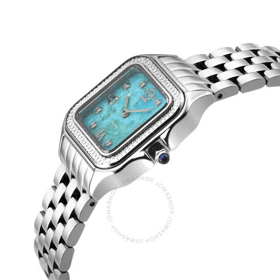 علبة وسوار من الفولاذ المقاوم للصدأ فضي اللون. إطار ثابت من الفولاذ المقاوم للصدأ فضي اللون. ميناء أزرق بعقارب فضية اللون وعلامات ساعات من الألماس. نوع الميناء: تناظري. حركة كوارتز روندا كاليبر 762. زجاج ياقوت مقاوم للخدش. تاج قابل للسحب/الدفع. غطاء خلفي صلب. شكل العلبة مربع، مقاسها: 27.5 مم، سمكها: 9 مم. عرض السوار: 16 مم. مشبك قابل للطي بزر ضغط. مقاومة للماء حتى عمق 50 مترًا / 165 قدمًا. الوظائف: الساعات، الدقائق. سلسلة ميلانو. تصميم عصري. اسم الساعة: سويس موف. ساعة GV2 من جيفريل ميلانو النسائية بمينا زرقاء مرصعة بالألماس، 121101B.