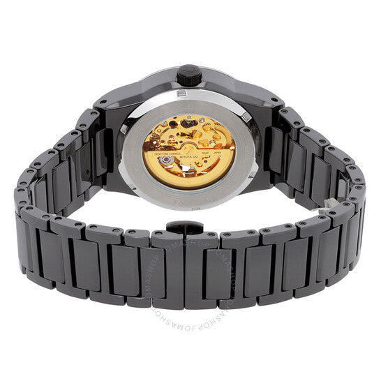 علبة من السيراميك الأسود والفولاذ المقاوم للصدأ مع سوار من السيراميك الأسود. إطار ثابت من السيراميك الأسود. ميناء أسود هيكلي بعقارب ذهبية اللون وعلامات ساعات. علامات دقائق حول الحافة الخارجية. نوع الميناء: تناظري. ميناء فرعي واحد يعرض الثواني الصغيرة. حركة أوتوماتيكية بولوفا كاليبر 8N40. زجاج معدني مقاوم للخدش. تاج قابل للسحب/الدفع. غطاء خلفي شفاف. شكل العلبة دائري، مقاسها 41 مم. مشبك قابل للطي بزر ضغط. مقاومة للماء حتى عمق 30 مترًا / 100 قدم. الوظائف: الساعات، الدقائق، الثواني. سلسلة ميلينيا. ساعة رسمية. ساعة بولوفا ميلينيا أوتوماتيكية سوداء هيكلية للرجال، 98A291.