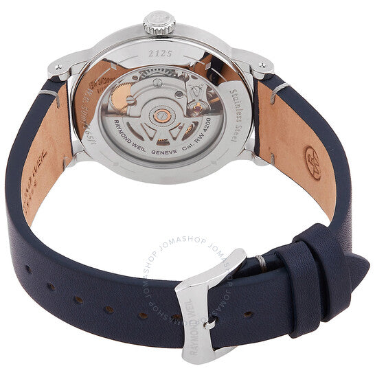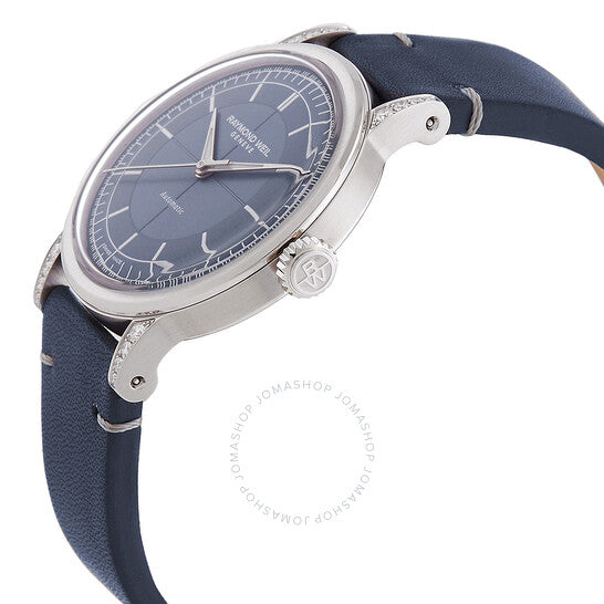 علبة فضية اللون من الفولاذ المقاوم للصدأ مرصعة بـ 16 ماسة مزروعة في المختبر. سوار جلدي أزرق داكن. إطار ثابت من الفولاذ المقاوم للصدأ فضي اللون. ميناء أزرق جينز مع عقارب وعلامات ساعات فضية اللون. علامات دقائق حول الحافة الخارجية. نوع الميناء: تناظري. عقارب وعلامات مضيئة. حركة أوتوماتيكية من ريموند ويل كاليبر RW4200 مع احتياطي طاقة لمدة 41 ساعة. زجاج من الياقوت المقاوم للخدش. تاج قابل للسحب/الدفع. غطاء خلفي شفاف. شكل دائري، مقاس العلبة: 35 مم، سمكها: 9.18 مم. مشبك بإبزيم. مقاومة للماء حتى عمق 50 مترًا / 165 قدمًا. الوظائف: الساعات، الدقائق، الثواني. سلسلة ميليسيم. تصميم كاجوال. علامة الساعة: صناعة سويسرية. ساعة ريموند ويل ميليسيم أوتوماتيكية نسائية 2125-SCS-50011.