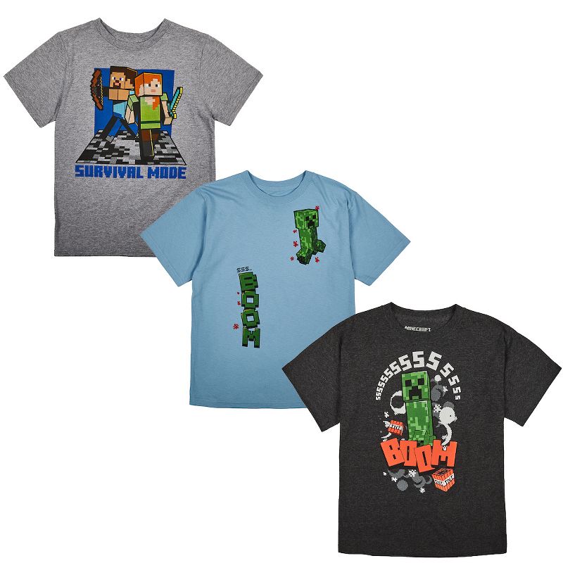 - مجموعة من 3 قطع: تتضمن هذه المجموعة ثلاثة تيشيرتات مختلفة برقبة دائرية وأكمام قصيرة مستوحاة من ماينكرافت، مما يوفر تنوعًا وقيمة. مثالية لعشاق اللعبة الصغار، حيث تتيح لهم هذه المجموعة التعبير عن حبهم لماينكرافت بتصاميم تناسب جميع المناسبات.