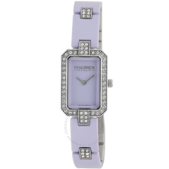 علبة من الفولاذ المقاوم للصدأ مع سوار سيراميك بنفسجي اللون مع وصلات مرصعة بالكريستال. إطار ثابت من الفولاذ المقاوم للصدأ. ميناء بنفسجي اللون مع عقارب فضية اللون. بدون مؤشرات. نوع الميناء: تناظري. حركة كوارتز. زجاج معدني مقاوم للخدش. غطاء خلفي صلب. قطر العلبة: ٢٠ مم. سُمكها: ٧ مم. شكلها مستطيل. مشبك مجوهرات. مقاومة للماء حتى عمق ٣٠ مترًا / ١٠٠ قدم. الوظائف: الساعات، الدقائق. طراز ساعة رسمية. علامة الساعة: تصميم إيطالي. ساعة هاوركس إيطاليا ميرور نسائية XS357DL1.
