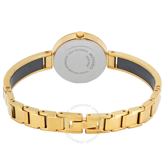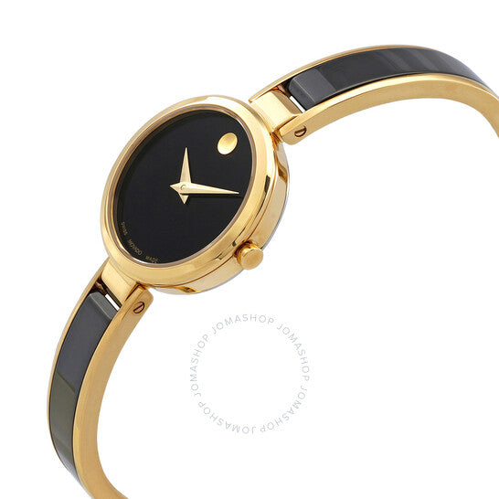 علبة من الفولاذ المقاوم للصدأ بلون الذهب الأصفر، مع سوار من الفولاذ المقاوم للصدأ بلون الذهب الأصفر مُطعّم بالسيراميك الأسود. إطار ثابت من الفولاذ المقاوم للصدأ بلون الذهب الأصفر. ميناء أسود بعقارب بلون الذهب الأصفر. تظهر نقطة موفادو عند موضع الساعة ١٢. نوع الميناء: تناظري. حركة كوارتز. زجاج ياقوت مقاوم للخدش. تاج قابل للسحب/الدفع. غطاء خلفي صلب. شكل دائري، مقاس العلبة: ٢٤ مم. مشبك مجوهرات. مقاومة للماء حتى عمق ٣٠ مترًا / ١٠٠ قدم. الوظائف: الساعات، الدقائق. سلسلة مودا. طراز ساعة رسمية. علامة الساعة: صناعة سويسرية. ساعة موفادو مودا كوارتز نسائية بمينا سوداء ٠٦٠٧٧١٤.