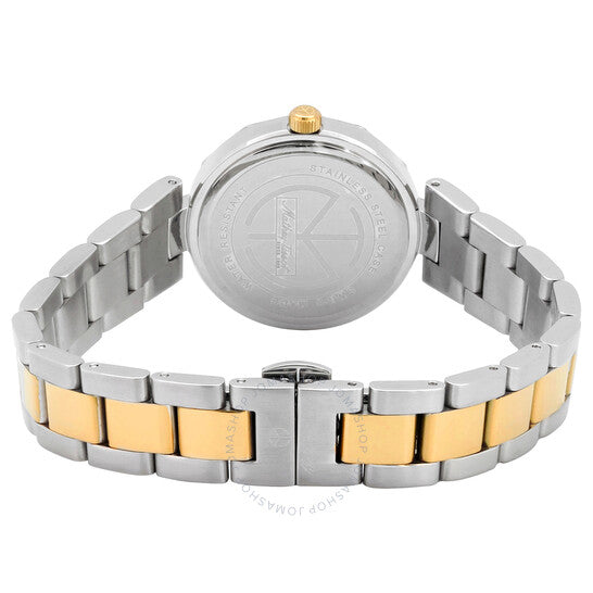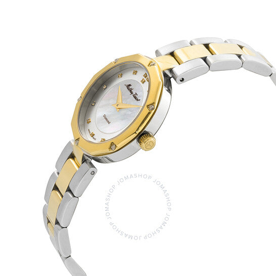 علبة من الفولاذ المقاوم للصدأ بلونين، مع سوار من الفولاذ المقاوم للصدأ بلونين (فضي وذهبي أصفر). إطار ثابت من الفولاذ المقاوم للصدأ بلون ذهبي أصفر. ميناء من عرق اللؤلؤ مع عقارب ذهبية صفراء وعلامات ساعات من الألماس. نوع الميناء: تناظري. حركة كوارتز روندا كاليبر 762. زجاج معدني مقاوم للخدش. تاج قابل للسحب/الدفع. غطاء خلفي صلب. شكل دائري، مقاس العلبة: 32 مم. مشبك قابل للطي. مقاومة للماء حتى عمق 50 مترًا / 165 قدمًا. الوظائف: الساعات، الدقائق. معلومات إضافية: ألماس. سلسلة مولي. طراز ساعة رسمية. علامة الساعة: صناعة سويسرية. ساعة ماثي-تيسوت مولي كوارتز نسائية مرصعة بالألماس D1087BQYI.