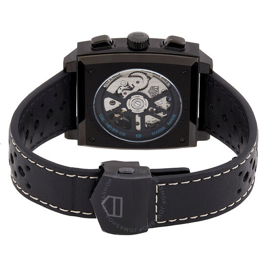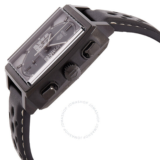 علبة تيتانيوم سوداء مطلية بالماس (DLC) مع سوار جلدي أسود. إطار ثابت من التيتانيوم الأسود المطلي بالماس (DLC). ميناء رمادي من الأوبالين مع عقارب وعلامات ساعات سوداء. علامات دقائق حول الحافة الخارجية. نوع الميناء: تناظري. عقارب وعلامات مضيئة. عرض التاريخ عند موضع الساعة السادسة. كرونوغراف - ثلاثة موانئ فرعية تعرض: 60 ثانية، 30 دقيقة، و12 ساعة. حركة تاغ هوير كاليبر 02 أوتوماتيكية، تحتوي على 33 جوهرة، مكونة من 168 جزءًا، تنبض بمعدل 28800 ذبذبة في الساعة، ولديها احتياطي طاقة يصل إلى 80 ساعة تقريبًا. كريستال ياقوت مقاوم للخدش. غطاء خلفي شفاف. شكل العلبة مربع، مقاسها: 39 مم. مشبك قابل للطي. مقاومة للماء حتى عمق 100 متر / 330 قدمًا. الوظائف: كرونوغراف، عجلة عمودية، تاريخ، ساعة، دقيقة، ثانية صغيرة. سلسلة موناكو نايت درايفر. تصميم ساعة فاخرة. ملصق الساعة: صناعة سويسرية. ساعة تاغ هوير موناكو نايت درايفر كرونوغراف أوتوماتيكية للرجال CBL2181.FC6515.