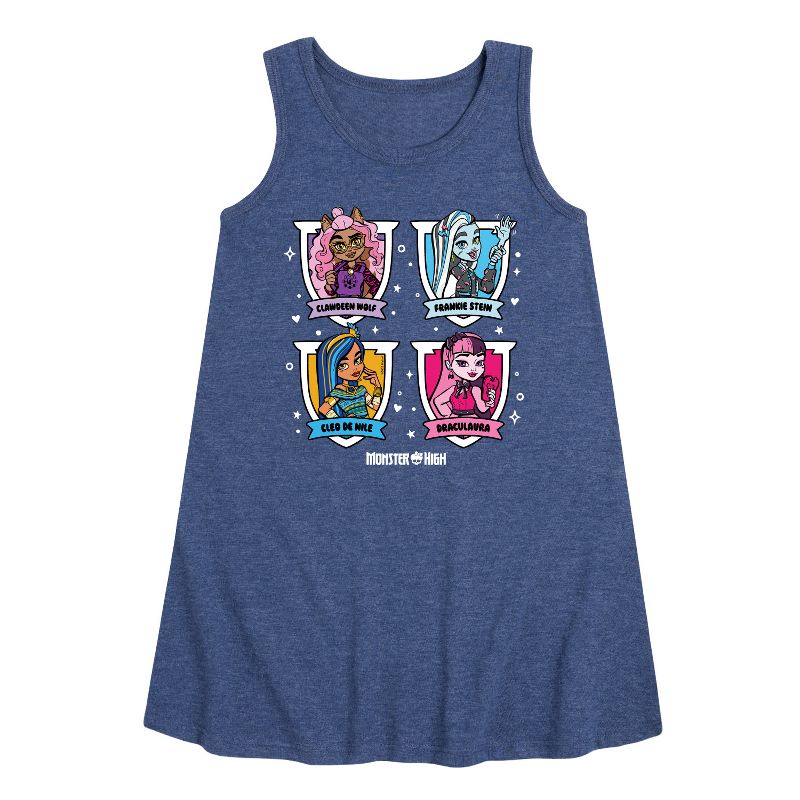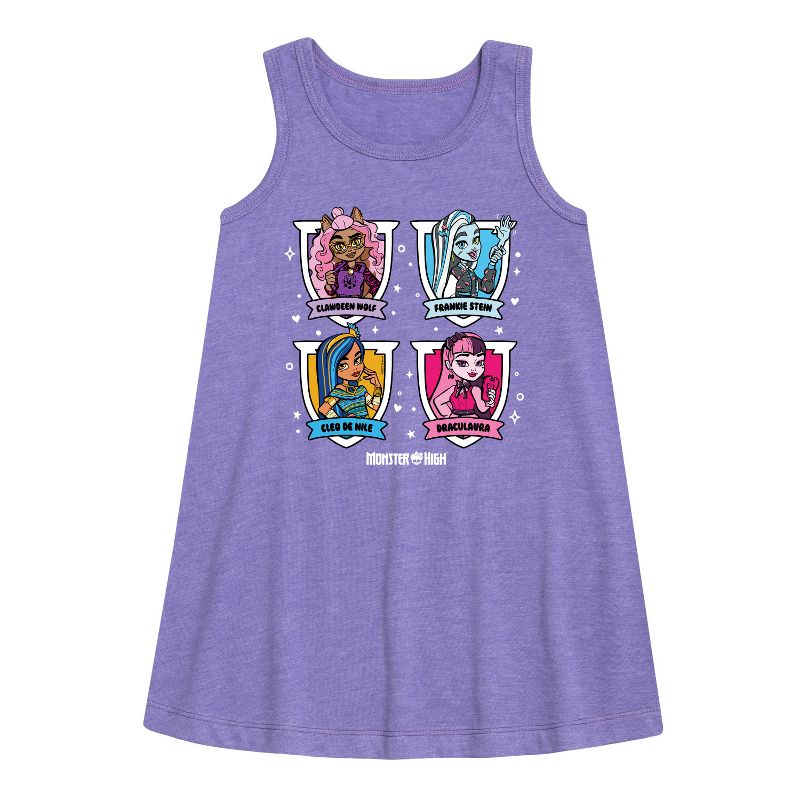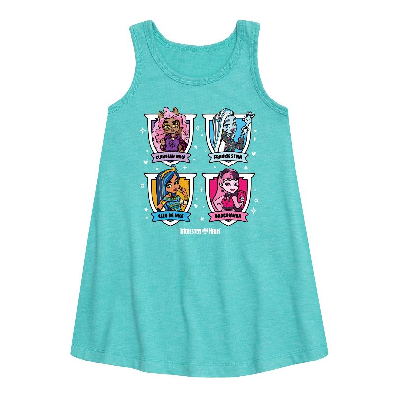 مونستر هاي - شبكة الشخصيات - فستان بقصة حرف A للفتيات الصغيرات والشابات - تلتقي الغرابة بالروعة في أزياء مونستر هاي الجرافيكية التي تضم شخصيات غولية مثل دراكولاورا، وفرانكي شتاين، وكلاودين وولف. تحتفي هذه التصاميم الجريئة والعصرية بالتعبير عن الذات، والتفرد، وأسلوب الوحوش.