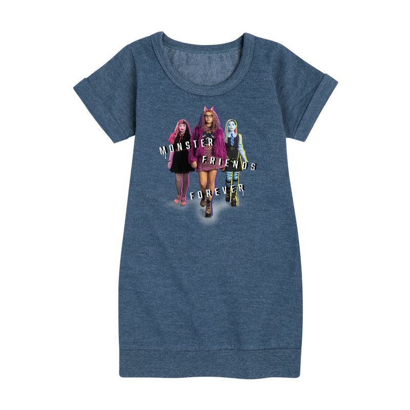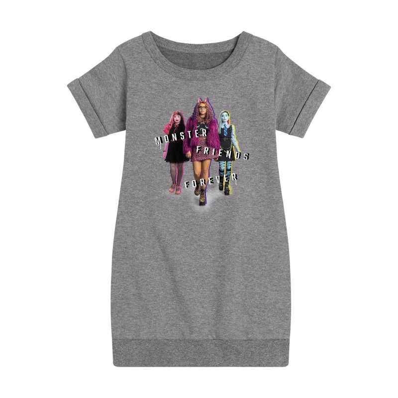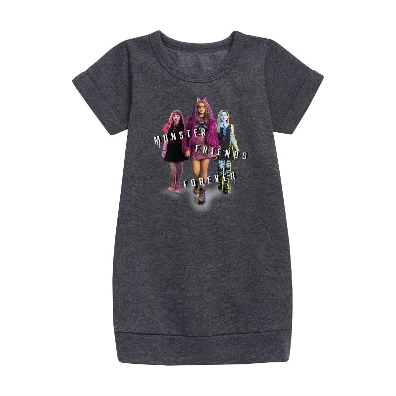 مونستر هاي - مونستر فريندز فور إيفر - فستان صوف للفتيات الصغيرات والشابات - تلتقي الغرابة بالروعة في أزياء مونستر هاي الجرافيكية التي تضم شخصيات مثل دراكولاورا وفرانكي شتاين وكلاودين وولف. تحتفي هذه التصاميم الجريئة والعصرية بالتعبير عن الذات والتفرد وأسلوب الوحوش.