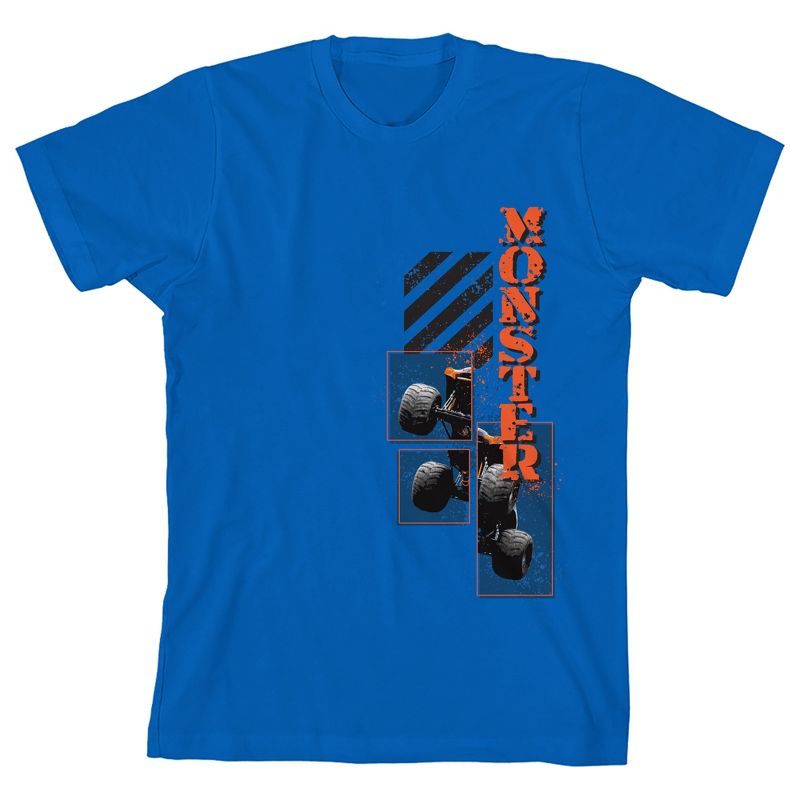 - يتميز التي شيرت المصمم خصيصًا للشاحنات بصورة كبيرة وجريئة لشاحنة وحش وكلمة "Monster" التي تمت طباعتها بشكل احترافي على خلفية زرقاء ملكية لضمان جودة طباعة تدوم طويلاً.