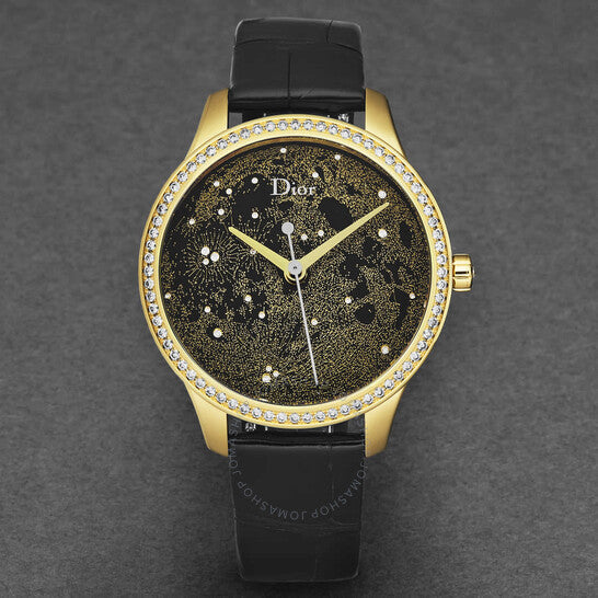 علبة من الذهب الأصفر عيار 18 قيراطًا، مع سوار جلدي أسود. إطار ثابت من الذهب الأصفر مرصع بالألماس. ميناء ذهبي اللون مع عقارب ذهبية اللون. نوع الميناء: تناظري. حركة أوتوماتيكية SW300. زجاج من الياقوت المقاوم للخدش. تاج قابل للسحب والدفع. غطاء خلفي شفاف. شكل دائري، مقاس العلبة: 36 مم، سمكها: 12 مم. عرض السوار: 16 مم، طوله: 7 بوصات. مشبك تانغ. مقاومة للماء حتى عمق 50 مترًا / 165 قدمًا. الوظائف: الساعات، الدقائق، الثواني. معلومات إضافية: الساعات، الدقائق، الثواني. سلسلة مونتين. تصميم ساعة فاخرة. ساعة ديور مونتين أوتوماتيكية نسائية، بمينا ذهبي مرصع بالألماس، CD153550A001.