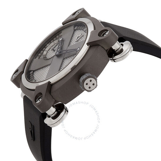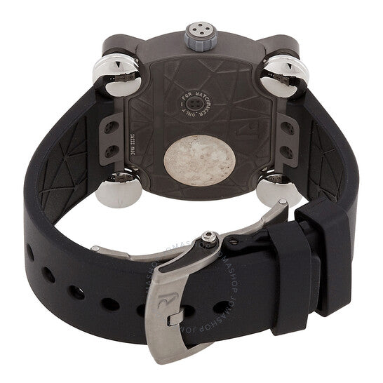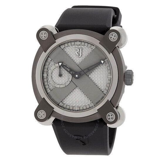 علبة من الفولاذ المقاوم للصدأ مطلية باللون الرمادي مع سوار مطاطي أسود. إطار ثابت مطلي باللون الرمادي وفضي اللون. ميناء رمادي مع عقارب هيكلية سوداء وعلامات ساعات مؤشرة. علامات دقائق حول الحافة الخارجية. نوع الميناء: تناظري. حركة أوتوماتيكية من رومان جيروم، عيار RJ001-A، تحتوي على 23 جوهرة، تنبض بمعدل 28800 ذبذبة في الساعة، ولديها احتياطي طاقة لمدة 42 ساعة تقريبًا. زجاج من الياقوت المقاوم للخدش. تاج لولبي. غطاء خلفي صلب. شكل دائري. حجم العلبة: 40 مم. سمكها: 12 مم. عرض السوار: 23 مم. طول السوار: 8 بوصات. مشبك قابل للطي بزر ضغط. مقاومة للماء حتى عمق 30 مترًا / 100 قدم. الوظائف: ساعة، دقيقة. سلسلة مون إنفيدر. تصميم ساعة فاخر. علامة الساعة: صناعة سويسرية. ساعة رومان جيروم مون إنفيدر أوتوماتيكية للرجال بمينا رمادي، RJ.M.AU.IN.020.01.