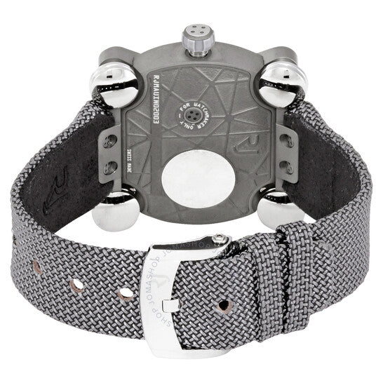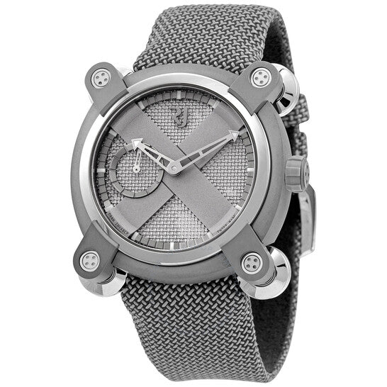 علبة من الفولاذ المقاوم للصدأ مع سوار من القماش. إطار ثابت من الفولاذ المقاوم للصدأ. ميناء فضي اللون مع عقارب هيكلية على شكل سهم فضية اللون وعلامات ساعات مؤشرة. علامات دقائق حول الحافة الخارجية. نوع الميناء: تناظري. ميناء فرعي واحد يعرض: ثوانٍ صغيرة. حركة أوتوماتيكية رومان جيروم كاليبر RJ001-C مع احتياطي طاقة لمدة 42 ساعة. كريستال ياقوت مقاوم للخدش. تاج لولبي. غطاء خلفي صلب. شكل دائري، حجم العلبة: 40 مم. مشبك تانغ. مقاومة للماء حتى عمق 30 مترًا / 100 قدم. الوظائف: الساعات، الدقائق، الثواني الصغيرة. معلومات إضافية: إصدار محدود من 99 قطعة. سلسلة مون إنفيدر. تصميم ساعة فاخرة. علامة الساعة: صناعة سويسرية. ساعة رومان جيروم مون إنفيدر أوتوماتيكية للرجال بمينا فضي، RJ.M.AU.IN.020.03.