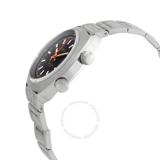 علبة وسوار من الفولاذ المقاوم للصدأ فضي اللون. إطار ثابت من الفولاذ المقاوم للصدأ فضي اللون. ميناء أسود بعلامات ساعات مؤشرة. علامات دقائق حول الحافة الخارجية. نوع الميناء: تناظري. عقارب وعلامات مضيئة. عرض التاريخ عند موضع الساعة 3. أوريس كاليبر 733، قاعدة SW 200-1 حركة أوتوماتيكية، مبنية على SW 200-1، تحتوي على 26 جوهرة، تنبض بمعدل 28800 ذبذبة في الساعة، ولديها احتياطي طاقة لمدة 38 ساعة تقريبًا. كريستال ياقوت مقاوم للخدش مضاد للانعكاس. تاج لولبي. غطاء خلفي صلب. شكل العلبة دائري، حجمها: 39 مم. مشبك قابل للطي بزر ضغط. مقاومة للماء حتى عمق 100 متر / 330 قدمًا. الوظائف: التاريخ، الساعة، الدقيقة، الثانية. سلسلة إصدار موفمبر. تصميم ساعة كاجوال. ملصق الساعة: صناعة سويسرية. أوريس إصدار موفمبر أوتوماتيكي بمينا سوداء 01 733 7737 4034-Set MB.
