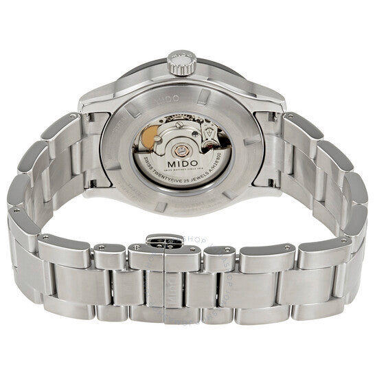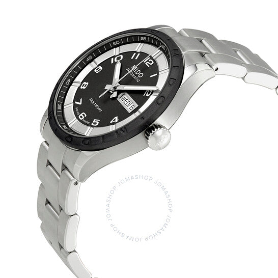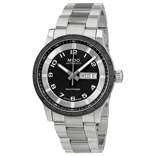 علبة من الفولاذ المقاوم للصدأ مع سوار من الفولاذ المقاوم للصدأ. إطار ثابت من الفولاذ المقاوم للصدأ بحلقة علوية سوداء. ميناء أسود بعقارب فضية اللون ومؤشرات ساعات رقمية عربية. مؤشرات دقائق حول الحافة الخارجية. نوع الميناء: تناظري. عقارب ومؤشرات مضيئة. عرض يوم الأسبوع والتاريخ عند موضع الساعة 3. حركة أوتوماتيكية. زجاج ياقوت مقاوم للخدش. تاج لولبي. غطاء خلفي شفاف. حجم العلبة: 42 مم. سمكها: 11 مم. شكلها دائري. عرض السوار: 25 مم. مشبك قابل للطي. مقاومة للماء حتى عمق 100 متر / 330 قدمًا. الوظائف: التاريخ، اليوم، الساعة، الدقيقة، الثانية. طراز ساعة رسمية. علامة الساعة: صناعة سويسرية. ساعة ميدو مولتي فورت أوتوماتيكية للرجال بمينا أسود M0184301106200