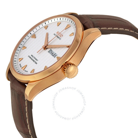 علبة من الفولاذ المقاوم للصدأ بلون ذهبي مع سوار جلدي بني. إطار ذهبي ثابت. ميناء فضي بعقارب ذهبية اللون وعلامات ساعات. علامات دقائق حول الحافة الخارجية. نوع الميناء: تناظري. عرض يوم الأسبوع والتاريخ عند موضع الساعة 3. حركة أوتوماتيكية من ميدو كاليبر باورماتيك 80 COSC مع احتياطي طاقة يصل إلى 80 ساعة. زجاج معدني مقاوم للخدش. تاج لولبي. غطاء خلفي هيكلي. شكل دائري، مقاس العلبة: 42 مم، سمكها: 10 مم. عرض السوار: 22 مم. مشبك تانغ. مقاومة للماء حتى عمق 100 متر / 330 قدمًا. الوظائف: التاريخ، اليوم، الساعة، الدقيقة، الثانية، الكرونومتر. تصميم كاجوال. علامة الساعة: صناعة سويسرية. إصدارات المنتج: M005 431 36 031 00، M005-431-36-031-00، M005/431/36/031/00، M0054313603100. ساعة ميدو مولتي فورت أوتوماتيكية للرجال بمينا فضي، M0054313603100.