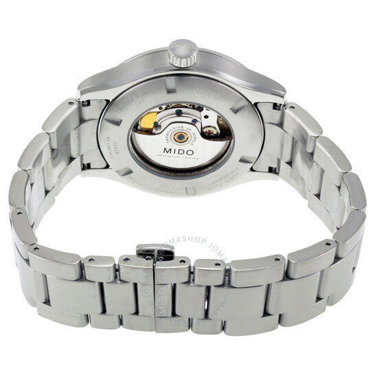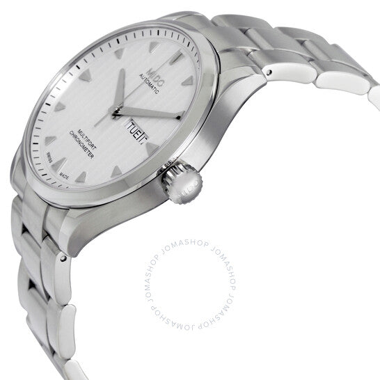 علبة من الفولاذ المقاوم للصدأ مع سوار من الفولاذ المقاوم للصدأ. إطار ثابت من الفولاذ المقاوم للصدأ. ميناء فضي اللون بعقارب فضية اللون وعلامات ساعات. علامات دقائق حول الحافة الخارجية. نوع الميناء: تناظري. عرض يوم الأسبوع والتاريخ عند موضع الساعة 3. حركة أوتوماتيكية من عيار 80.621 COSC مع احتياطي طاقة يصل إلى 80 ساعة. زجاج ياقوتي مقاوم للخدش. غطاء خلفي شفاف. حجم العلبة: 42 مم. سمكها: 10.95 مم. شكلها دائري. عرض السوار: 22 مم. مشبك قابل للطي. مقاومة للماء حتى عمق 100 متر / 330 قدمًا. الوظائف: التاريخ، اليوم، الساعة، الدقيقة، الثانية. تصميم كاجوال. علامة الساعة: صناعة سويسرية. ساعة ميدو ملتي فورت أوتوماتيكية بمينا فضي M005.431.11.031.00.