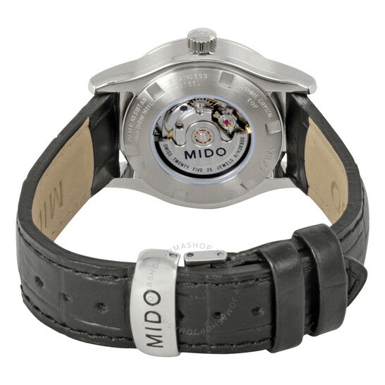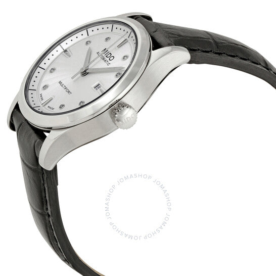علبة من الفولاذ المقاوم للصدأ مع سوار جلدي أسود. إطار ثابت من الفولاذ المقاوم للصدأ. ميناء فضي اللون بعقارب فضية اللون وعلامات ساعات من الألماس. علامات دقائق حول الحافة الخارجية. نوع الميناء: تناظري. عرض التاريخ عند موضع الساعة 3. حركة أوتوماتيكية ETA 2671 مع احتياطي طاقة يبلغ حوالي 38 ساعة. زجاج ياقوتي مقاوم للخدش. غطاء خلفي شفاف. حجم العلبة: 31 مم. سمكها: 9.7 مم. شكلها دائري. عرض السوار: 17 مم. مشبك قابل للطي. مقاومة للماء حتى عمق 50 مترًا / 165 قدمًا. الوظائف: التاريخ، الساعة، الدقائق، الثواني. تصميم كاجوال. علامة الساعة: صناعة سويسرية. ساعة ميدو ملتي فورت النسائية الأوتوماتيكية M005.007.16.036.20.