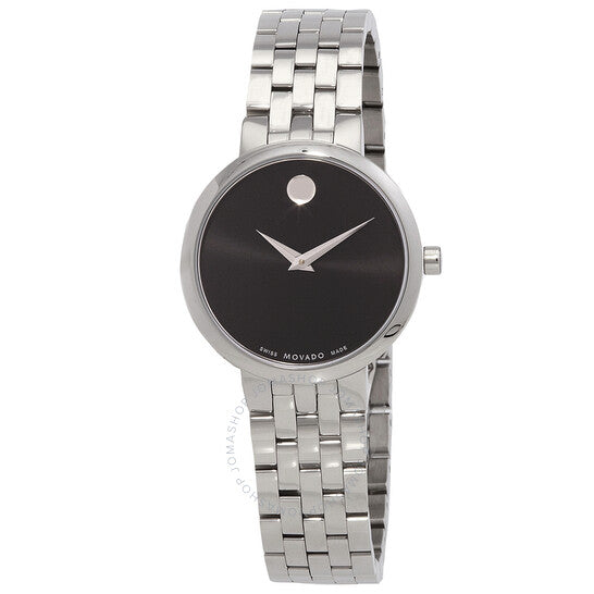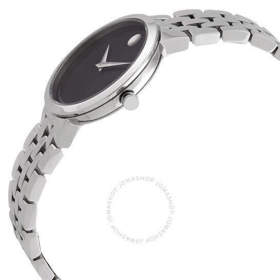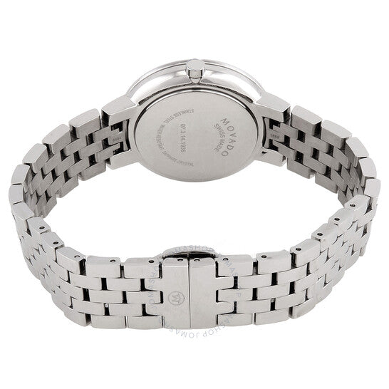 علبة وسوار من الفولاذ المقاوم للصدأ فضي اللون. إطار ثابت من الفولاذ المقاوم للصدأ فضي اللون. ميناء أسود بعقارب فضية اللون. نوع الميناء: تناظري. حركة كوارتز. زجاج ياقوت مقاوم للخدش. غطاء خلفي صلب. شكل العلبة دائري، مقاسها: ٢٩.٥ مم. مشبك قابل للطي مع قفل أمان. مقاومة للماء حتى عمق ٣٠ مترًا / ١٠٠ قدم. الوظائف: الساعات، الدقائق. سلسلة "ميوزيوم كلاسيك". تصميم ساعة كاجوال. علامة الساعة: صناعة سويسرية. ساعة موفادو "ميوزيوم كلاسيك" كوارتز نسائية بمينا سوداء، رقم الموديل ٠٦٠٧٨١٣.