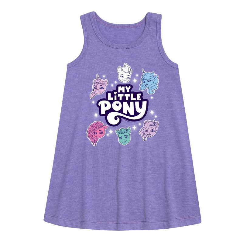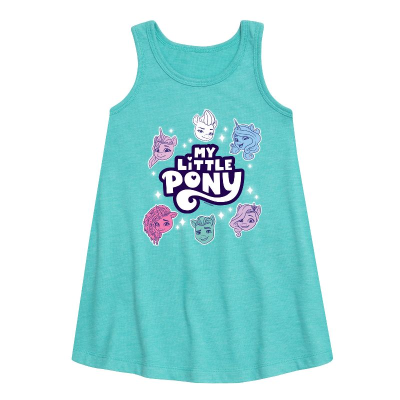 ماي ليتل بوني - رؤوس شعار - فستان بناتي بتصميم خطي - انطلقي في رحلة ساحرة عبر عالم ماي ليتل بوني الساحر مع مجموعتنا الساحرة من الملابس الجرافيكية. صُنعت تيشيرتنا وبلوزاتنا ذات القلنسوة من مواد فاخرة تضمن الراحة والمتانة، وهي تحتفي بالشخصيات المحبوبة من الأجيال القديمة والحديثة. من مهور بونيفيل الكلاسيكية إلى سكان إكوستريا النابضين بالحياة، تتميز تصاميمنا بشخصيات شهيرة مثل توايلايت سباركل، رينبو داش، بينكي باي، راريتي، آبلجاك، وفلاترشاي. سواء كنتِ من محبي السلسلة الأصلية أو النسخة الحديثة، فإن ملابسنا تجسد سحر وروعة الصداقة التي تُميز عالم ماي ليتل بوني.