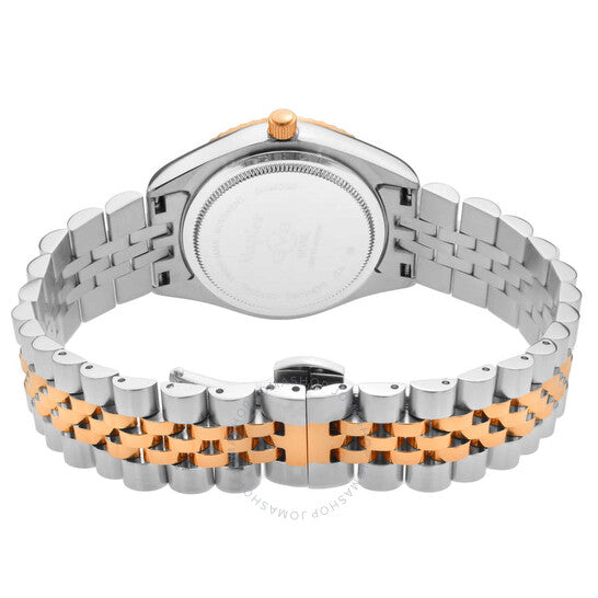 علبة من الفولاذ المقاوم للصدأ مع سوار من الفولاذ المقاوم للصدأ ثنائي اللون (فضي وذهبي وردي). إطار ثابت مُخدّد بلون ذهبي وردي. ميناء من عرق اللؤلؤ مع عقارب مضيئة بلون ذهبي وردي وعلامات ساعات من الكريستال. نوع الميناء: تناظري. عقارب مضيئة. عرض التاريخ عند موضع الساعة 3. حركة كوارتز. زجاج ياقوت مقاوم للخدش. تاج قابل للسحب/الدفع. غطاء خلفي صلب. شكل دائري. حجم العلبة: 34 مم. سُمكها: 10 مم. مشبك قابل للطي بزر ضغط. مقاومة للماء حتى عمق 50 مترًا / 165 قدمًا. الوظائف: التاريخ، الساعة، الدقائق، الثواني. سلسلة نابولي. ساعة أنيقة. ساعة GV2 من جيفريل نابولي للسيدات بمينا عرق اللؤلؤ 12408.