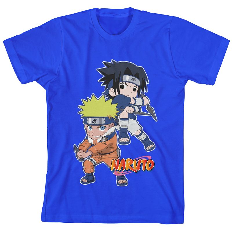 - تصميم مخصص: يتميز هذا التي شيرت ناروتو المصمم خصيصًا برسومات ملونة كبيرة لناروتو وساسوكي على طراز تشيبي في وضعية القتال والتي تم طباعتها بشكل احترافي على خلفية زرقاء ملكية لضمان جودة طباعة تدوم طويلاً.