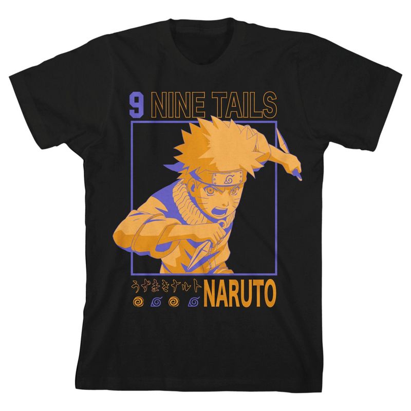 - تصميم مخصص: تميز بتصميم هذا التي شيرت الجرافيكي المخصص، والذي يتميز بصورة أحادية اللون باللون البرتقالي لناروتو في إطار أرجواني مع نص أرجواني وبرتقالي يظهر اتصال ناروتو القوي مع التسعة ذيول.