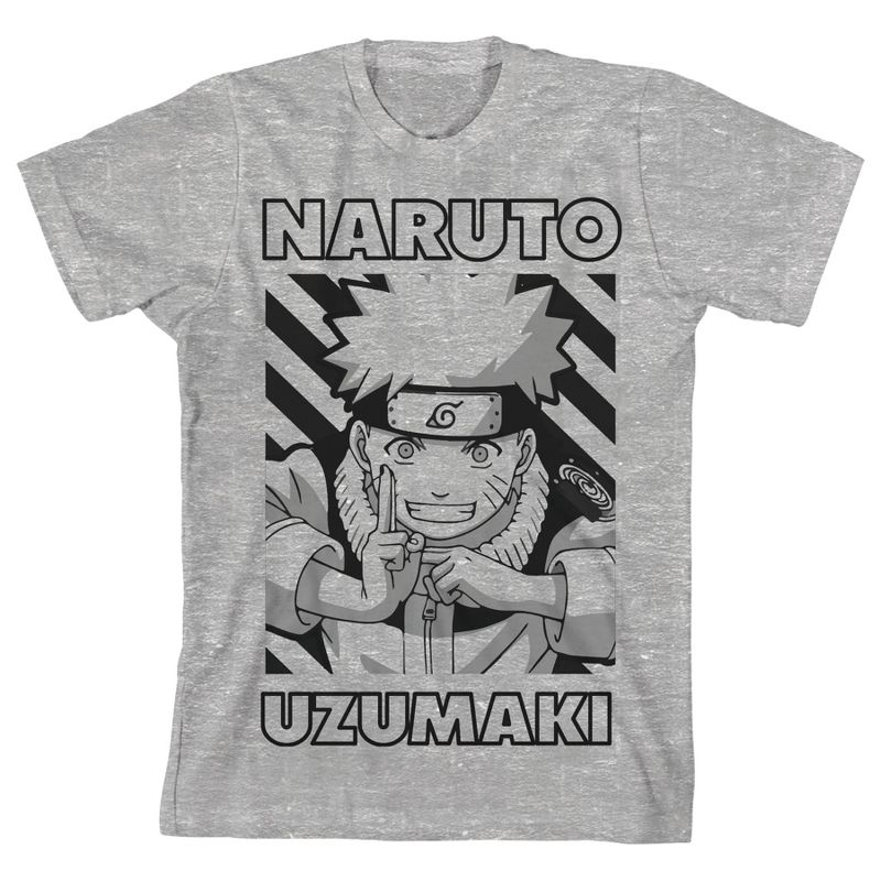 - تيشيرت جرافيكي: صورة رمادية لناروتو أوزوماكي يقف أمام خطوط سوداء على هذا التيشيرت الجرافيكي، بينما يظهر اسمه بأحرف رمادية أعلى وأسفل الصورة. سيُعجب مُحبو سلسلة ناروتو بهذا التصميم المُمتع للشخصية.