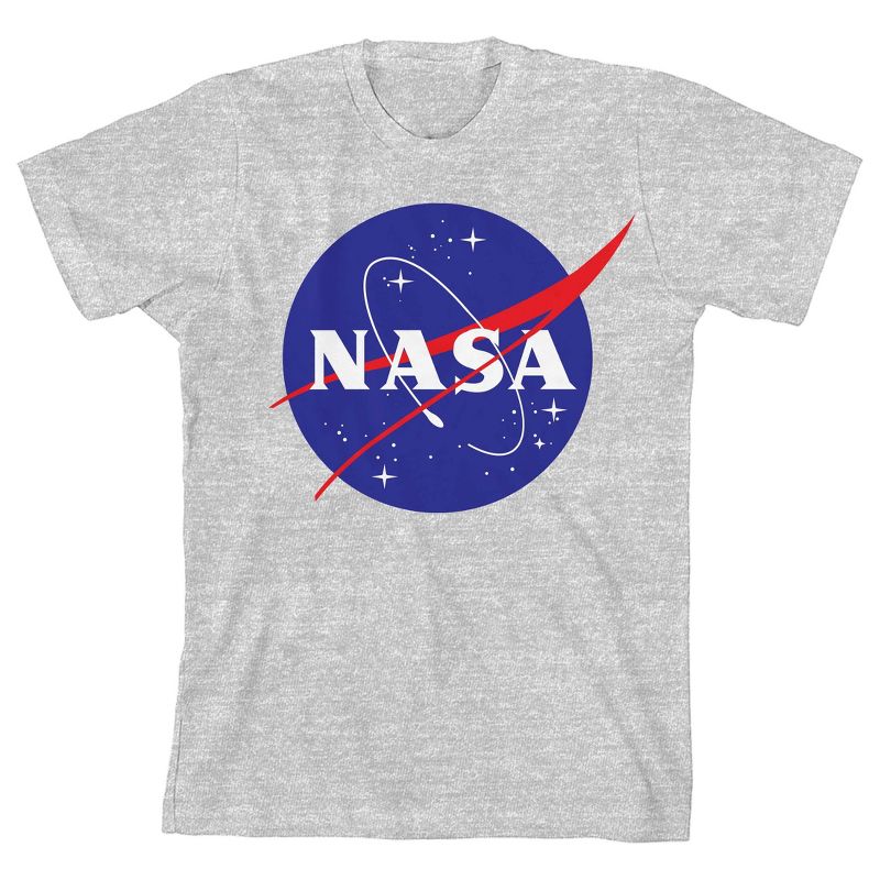 - تيشيرت برسومات جرافيكية: احتفل بوصولنا إلى الحدود النهائية مع هذا التيشيرت للأولاد. يتميز القميص بشعار ناسا الكلاسيكي، الذي يُجسّد اسم الوكالة، على خلفية دائرة زرقاء تُمثّل الفضاء. سيُلهم هذا القميص الأولاد ليحلموا بتوسع الكون.