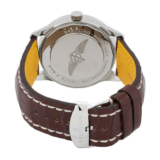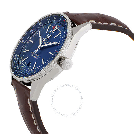 علبة فضية اللون من الفولاذ المقاوم للصدأ مع سوار بني من جلد التمساح. إطار دوار أحادي الاتجاه من الفولاذ المقاوم للصدأ فضي اللون. ميناء أزرق مع عقارب وعلامات ساعات فضية اللون. مقياس نافيميتر حول الحافة الخارجية. نوع الميناء: تناظري. عقارب وعلامات مضيئة. عرض التاريخ عند موضع الساعة السادسة. حركة بريتلينغ كاليبر 17 أوتوماتيكية، مبنية على ETA 2824-2، تحتوي على 25 جوهرة، تنبض بمعدل 28800 ذبذبة في الساعة، ولديها احتياطي طاقة لمدة 42 ساعة تقريبًا. زجاج ياقوت مقاوم للخدش. تاج قابل للسحب/الدفع. غطاء خلفي صلب. شكل العلبة دائري، مقاسها: 41 مم، سمكها: 10.10 مم. مشبك تانغ. مقاومة للماء حتى عمق 30 مترًا / 100 قدم. الوظائف: التاريخ، الساعة، الدقيقة، الثانية، الكرونومتر. سلسلة نافيتيمر. تصميم ساعة فاخرة. علامة الساعة: سويسرية الصنع. ساعة بريتلينج نافيتايمر أوتوماتيكية كرونومتر بمينا أزرق للرجال a17326161c1p1.