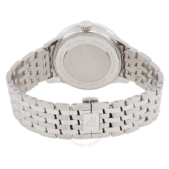 علبة وسوار من الفولاذ المقاوم للصدأ فضي اللون. إطار دوار ثنائي الاتجاه من الفولاذ المقاوم للصدأ رمادي اللون. ميناء رمادي اللون مع عقارب وعلامات ساعات فضية اللون. علامات دقائق حول الحافة الخارجية. نوع الميناء: تناظري. عقارب مضيئة. حركة أوتوماتيكية باحتياطي طاقة 38 ساعة. زجاج من الياقوت المقاوم للخدش. تاج لولبي. غطاء خلفي صلب. شكل العلبة دائري، مقاسها: 36 مم. مشبك قابل للطي مع مفتاح أمان. مقاومة للماء حتى عمق 30 مترًا / 100 قدم. الوظائف: الساعات، الدقائق، الثواني. سلسلة نافيتايمر. طراز ساعة رسمية. علامة الساعة: صناعة سويسرية. ساعة بريتلينغ نافيتايمر أوتوماتيكية نسائية بمينا رمادي A17327381B1A1.
