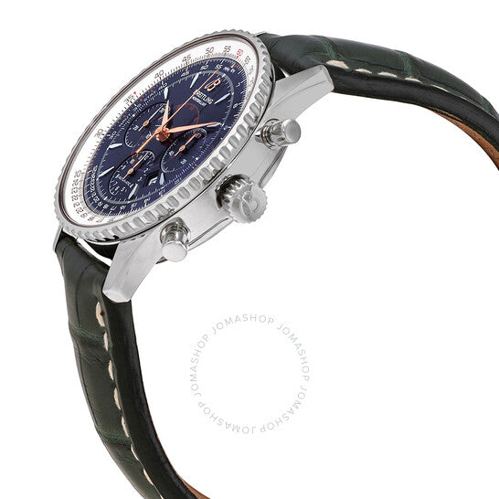 علبة فضية اللون من الفولاذ المقاوم للصدأ مع سوار جلدي. إطار دوار ثنائي الاتجاه من الفولاذ المقاوم للصدأ فضي اللون. ميناء أزرق مع عقارب وعلامات ساعات ذهبية وردية اللون. علامات دقائق حول الحافة الخارجية. نوع الميناء: تناظري. عقارب وعلامات مضيئة. عرض التاريخ بين الساعة الرابعة والخامسة. كرونوغراف - ثلاثة أقراص فرعية تعرض: 60 ثانية، 30 دقيقة، و12 ساعة. حركة بريتلينغ كاليبر 41 أوتوماتيكية، مبنية على ETA 2892-A2، تحتوي على 38 جوهرة، تنبض بمعدل 28800 ذبذبة في الساعة، ولديها احتياطي طاقة لمدة 42 ساعة تقريبًا. كريستال ياقوت مقاوم للخدش. قفل غير لولبي مع تاج مزدوج الحشيات. غطاء خلفي صلب. شكل دائري، حجم العلبة: 38 مم، سمك العلبة: 13.6 مم. عرض السوار: 20 مم. مشبك تانغ. مقاومة للماء حتى عمق 30 مترًا / 100 قدم. الوظائف: كرونوغراف، تاريخ، ساعات، دقائق، ثوانٍ، مقياس تحويل الأميال البحرية. سلسلة نافيتايمر. تصميم ساعة رياضية. علامة الساعة: صناعة سويسرية. ساعة بريتلينغ نافيتايمر كرونوغراف أوتوماتيكية بمينا زرقاء للرجال، A4137012/B875.428X.A18BA.