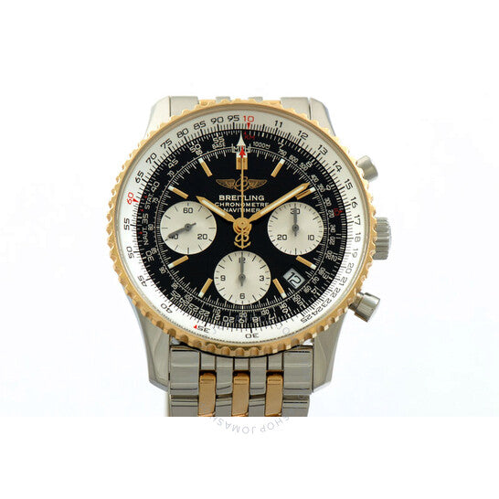 علبة من الفولاذ المقاوم للصدأ والذهب الأصفر عيار ١٨ قيراطًا، مع سوار من الفولاذ المقاوم للصدأ والذهب الأصفر عيار ١٨ قيراطًا. إطار دوار ثنائي الاتجاه. ميناء أسود-فضي مع عقارب وعلامات ساعات من الذهب الأصفر. نوع الميناء: تناظري. عقارب وعلامات مضيئة. عرض التاريخ بين الساعة ٤ والساعة ٥. كرونوغراف - ثلاثة أقراص فرعية تعرض: ٦٠ ثانية، ٣٠ دقيقة، و١٢ ساعة. حركة أوتوماتيكية. زجاج ياقوت مقاوم للخدش. تاج لولبي. غطاء خلفي صلب. شكل دائري، حجم العلبة: ٤١.٨ مم، سمكها: ١٤.٦٠ مم. مشبك قابل للطي. مقاومة للماء حتى عمق ٣٠ مترًا / ١٠٠ قدم. الوظائف: كرونوغراف، تاريخ، ساعة، دقيقة، ثانية، مسطرة حاسبة. سلسلة نافيتايمر. تصميم ساعة فاخرة. ملصق الساعة: صناعة سويسرية. ساعة بريتلينغ نافيتايمر كرونوغراف أوتوماتيكية للرجال ثنائية اللون D2332212/B638.442D.