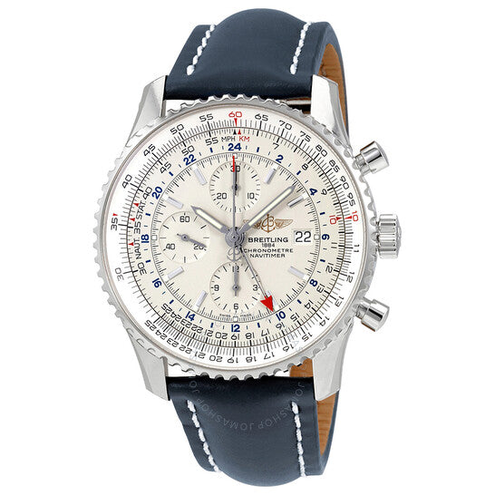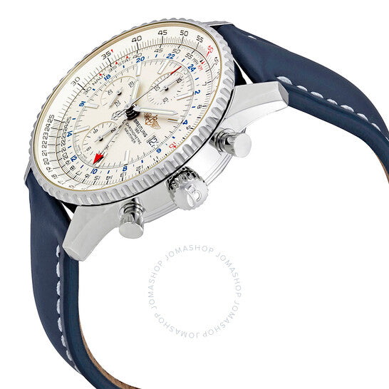 علبة من الفولاذ المقاوم للصدأ مع سوار جلدي أزرق. إطار دوار ثنائي الاتجاه من الفولاذ المقاوم للصدأ. ميناء فضي مع عقارب ومؤشرات ساعات فضية مضيئة. مؤشرات دقائق. مؤشرات ٢٤ ساعة. مقياس سرعة الدوران حول الحافة الخارجية. نوع الميناء: تناظري. عقارب ومؤشرات مضيئة. عرض التاريخ عند موضع الساعة ٣. كرونوغراف - ثلاثة موانئ فرعية تعرض: ٦٠ ثانية، ٣٠ دقيقة، و١٢ ساعة. حركة بريتلينغ أوتوماتيكية كاليبر ٢٤ مع احتياطي طاقة ٤٢ ساعة. زجاج ياقوت مقاوم للخدش. تاج قابل للسحب/الدفع. غطاء خلفي صلب. حجم العلبة: ٤٦ مم. سمكها: ١٥.٥٠ مم. شكلها دائري. عرض السوار: ٢٤ مم / ٢٠ مم. مشبك قابل للطي. مقاومة للماء حتى عمق ٣٠ مترًا / ١٠٠ قدم. الوظائف: كرونوغراف، تاريخ، ساعة، دقيقة، ثانية. تصميم ساعة فاخرة. ملصق الساعة: صناعة سويسرية. ساعة بريتلينج نافيتايمر وورلد أوتوماتيك للرجال A2432212-G571-102X-A20D.1.
