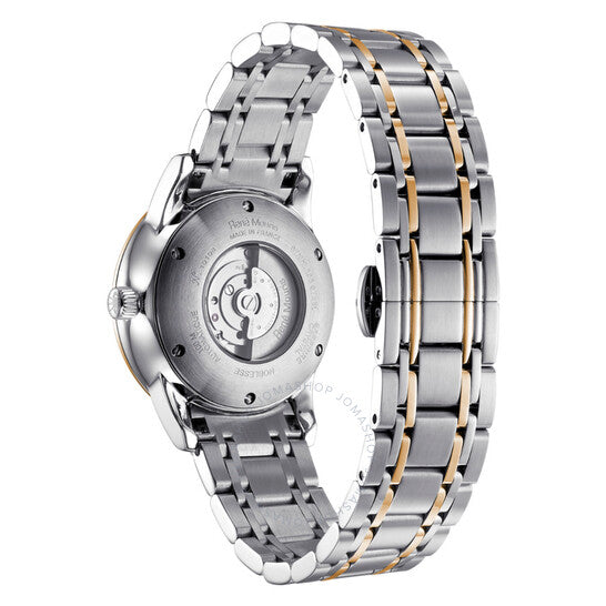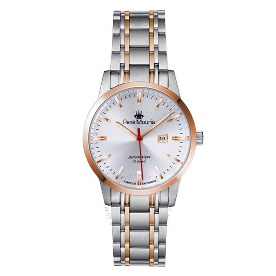 لتكريم صناعة الساعات الكلاسيكية، تتميز مجموعة Noblesse بمؤشر ميناء بسيط وواضح مع إعادة تفسيرها بحداثة أنيقة وزجاج ياقوت صلب لتحمل الخدوش اليومية. لا تشبه مجموعة Noblesse هذه معظم مجموعات Rene Mouris، فهي تقدم زوجًا من الأحجام الرجالية والنسائية وهي ساعة يد مثالية لمطابقة الزي الزوجي. هيكل من الفولاذ المقاوم للصدأ باللون الفضي مع سوار من الفولاذ المقاوم للصدأ ثنائي اللون (لون فضي ولون ذهبي وردي). إطار ثابت من الفولاذ المقاوم للصدأ باللون الذهبي الوردي. ميناء أبيض مع عقارب وعلامات ساعة باللون الذهبي الوردي. مقياس دقائق حول الحافة الداخلية. نوع الميناء: تناظري. عقارب مضيئة. عرض التاريخ عند موضع الساعة 3. حركة أوتوماتيكية. كريستال ياقوت مقاوم للخدش. تاج سحب / دفع. غطاء خلفي شفاف. شكل العلبة مستدير، حجم العلبة: 33 مم، سمك العلبة: 12 مم. عرض السوار: 17 مم، طول السوار: 7.5 بوصة. مشبك قابل للطي بزر ضغط. مقاومة للماء حتى عمق ١٠٠ متر / ٣٣٠ قدمًا. الوظائف: التاريخ، الساعات، الدقائق، الثواني. سلسلة نوبليس. ساعة أنيقة. علامة الساعة: فرنسية الصنع، آلية يابانية. ساعة رينيه موريس نوبليس أوتوماتيكية نسائية بمينا أبيض، موديل ١٠١٠٨RM٣.