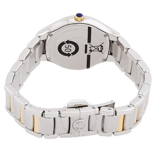علبة من الفولاذ المقاوم للصدأ فضية اللون مرصعة بـ 18 ماسة، وسوار من الفولاذ المقاوم للصدأ ثنائي اللون (فضي وذهبي). إطار ثابت من الفولاذ المقاوم للصدأ فضي اللون. ميناء من عرق اللؤلؤ مع عقارب ذهبية اللون ومؤشرات ساعات رومانية من الألماس. نوع الميناء: تناظري. حركة كوارتز. زجاج ياقوت مقاوم للخدش. تاج قابل للسحب/الدفع. غطاء خلفي صلب. شكل دائري، مقاس العلبة: 32 مم، سمكها: 7.58 مم. مشبك قابل للطي مع مفتاح أمان. مقاومة للماء حتى عمق 50 مترًا / 165 قدمًا. الوظائف: الساعة، الدقائق. معلومات إضافية: عدد الماسات: 42؛ وزن الماسات: 0.199 قيراط؛ نوع الماس في الميناء: rond /8/8 - si2 إلى si1. سلسلة Noemia. طراز ساعة رسمية. علامة الساعة: صناعة سويسرية. ساعة Raymond Weil Noemia كوارتز ألماس نسائية 5132-S1P-00966.