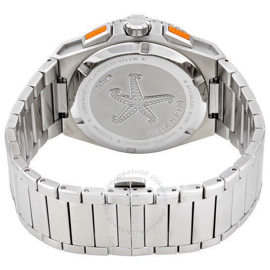علبة من الفولاذ المقاوم للصدأ مع سوار من الفولاذ المقاوم للصدأ. إطار دوار أحادي الاتجاه من الفولاذ المقاوم للصدأ. ميناء أزرق مع عقارب ومؤشرات ساعات فضية مضيئة. مؤشرات دقائق حول الحافة الخارجية. نوع الميناء: تناظري. عقارب ومؤشرات مضيئة. عرض التاريخ عند موضع الساعة الرابعة. كرونوغراف - ثلاثة أقراص فرعية تعرض: ٦٠ ثانية، ٣٠ دقيقة، وعُشر الثانية. حركة كوارتز. كريستال ياقوت مقاوم للخدش. تاج لولبي. غطاء خلفي صلب. حجم العلبة: ٤٤ مم. سُمكها: ١٣.٢١ مم. شكلها دائري. عرض السوار: ١٥ مم. مشبك قابل للطي. مقاومة للماء حتى عمق ٢٠٠ متر / ٦٦٠ قدمًا. الوظائف: كرونوغراف، تاريخ، ساعة، دقيقة، ثانية. تصميم كاجوال. ساعة ميدو أوشن ستار كابتن كرونوغراف للرجال M023.417.11.041.00