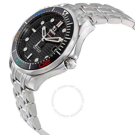 علبة من الفولاذ المقاوم للصدأ مع سوار من الفولاذ المقاوم للصدأ. إطار دوار أحادي الاتجاه من الفولاذ المقاوم للصدأ مع حلقة سيراميك سوداء. ميناء أسود (بنمط متموج) بعقارب فضية مضيئة على شكل سيف وعلامات ساعات منقطة. علامات دقائق حول الحافة الخارجية. نوع الميناء: تناظري. عقارب وعلامات مضيئة. عرض التاريخ عند موضع الساعة الثالثة. حركة أوميغا أوتوماتيكية من عيار 2500، مبنية على ETA 2892-A2، تحتوي على 27 جوهرة، تنبض بمعدل 25200 ذبذبة في الساعة، ولديها احتياطي طاقة لمدة 48 ساعة تقريبًا. زجاج من الياقوت المقاوم للخدش. تاج لولبي. غطاء خلفي صلب. شكل دائري. حجم العلبة: 41 مم. سمك العلبة: 13 مم. عرض السوار: 20 مم. مشبك قابل للطي بزر ضغط. مقاومة للماء حتى عمق 300 متر / 1000 قدم. الوظائف: التاريخ، الساعة، الدقائق، الثواني، ميزان محوري، كرونومتر. معلومات إضافية: إصدار محدود من "ريو ٢٠١٦". المجموعة الأولمبية، سلسلة ريو ٢٠١٦. طراز ساعة الغوص. علامة الساعة: صناعة سويسرية. ساعة أوميغا أوليمبيك كوليكشن ريو الرجالية، إصدار محدود، رقمها ٥٢٢.٣٠.٤١.٢٠.٠١.٠٠١.