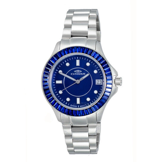 علبة من الفولاذ المقاوم للصدأ فضية اللون مع سوار فضي اللون. إطار ثابت مرصع بكريستال أزرق. ميناء أزرق مع عقارب وعلامات ساعات فضية اللون. نوع الميناء: تناظري. عقارب وعلامات مضيئة. عرض التاريخ عند موضع الساعة 3. آلية حركة كوارتز. زجاج معدني مقاوم للخدش. تاج قابل للسحب/الدفع. غطاء خلفي صلب. شكل دائري، مقاس العلبة: 36 مم، سمكها: 11 مم. عرض السوار: 18 مم، طوله: 6.5 بوصة. قابلة للطي بمشبك أمان. مقاومة للماء حتى عمق 30 مترًا / 100 قدم. الوظائف: التاريخ، الساعة، الدقائق، الثواني. طراز ساعة رسمية. اسم الساعة: سويسرية. ساعة أونيس ON7323 زرقاء اللون للسيدات ONJ7323-010DKBU.