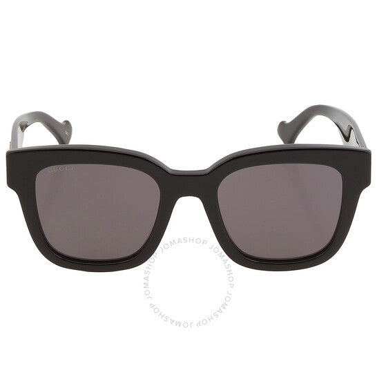 نظارات شمسية من غوتشي. رقم السلسلة: GG0998S. رمز اللون: 001. الشكل: مربع. عرض العدسة: 52 مم. جسر العدسة: 21 مم. طول الذراع: 145 مم. حماية 100% من الأشعة فوق البنفسجية. مادة الإطار: أسيتات. لون الإطار: أسود. نوع العدسات: رمادي. نمط الحافة: حافة كاملة. رمز UPC/EAN: 889652356099. نظارات شمسية غوتشي رمادية مربعة نسائية GG0998S 001 52.