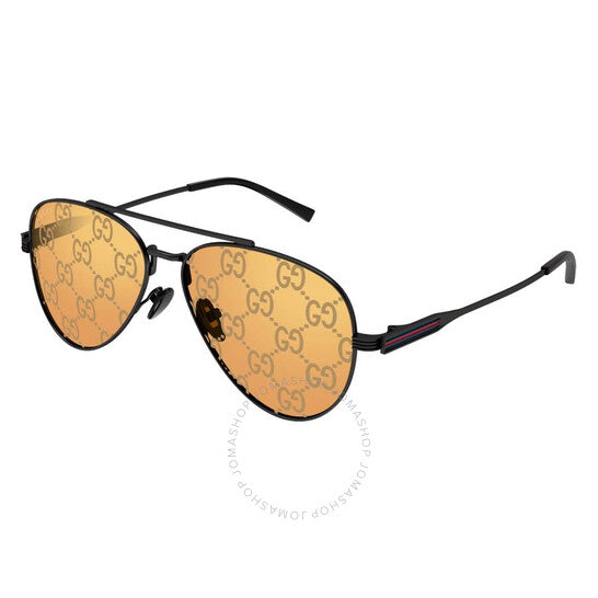 نظارات شمسية من غوتشي. رقم السلسلة: GG1874S. رمز اللون: 005. الشكل: طيار. عرض العدسة: 57 مم. جسر العدسة: 14 مم. طول الذراع: 145 مم. حماية 100% من الأشعة فوق البنفسجية. غير مستقطب. مادة الإطار: معدن. لون الإطار: أسود. نوع العدسات: شعار برتقالي. نمط الحافة: حافة كاملة. رمز UPC/EAN: 889652530024. نظارات شمسية غوتشي برتقالية بشعار طيار للرجال GG1874S 005 57.
