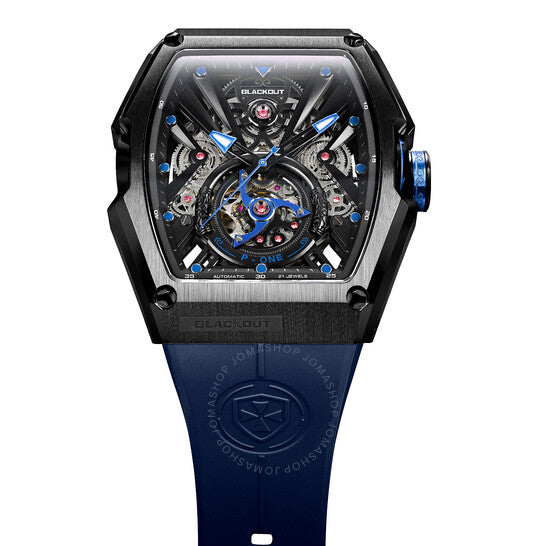 علبة سوداء من الفولاذ المقاوم للصدأ مع سوار مطاطي أزرق. إطار ثابت من الفولاذ المقاوم للصدأ أسود. ميناء أزرق بعقارب سوداء وأرقام عربية وعلامات ساعات. علامات دقائق حول الحافة الخارجية. نوع الميناء: تناظري. عقارب وعلامات مضيئة. حركة أوتوماتيكية من طراز ميوتا كاليبر 82S0، تحتوي على 21 جوهرة، تنبض بمعدل 21600 ذبذبة في الساعة، ولديها احتياطي طاقة يصل إلى 40 ساعة تقريبًا. زجاج من الياقوت المقاوم للخدش. تاج قابل للسحب/الدفع. غطاء خلفي شفاف. شكل العلبة: تونيو، مقاس العلبة: 44.53 مم. عرض السوار: 17 مم. مشبك بإبزيم. مقاومة للماء حتى عمق 50 مترًا / 165 قدمًا. الوظائف: الساعات، الدقائق، الثواني. سلسلة P-one. طراز الساعة الرياضية. ملصق الساعة: Japan Movt. ساعة رجالية أوتوماتيكية P-One سوداء اللون بمينا أزرق WATPONBLU001.