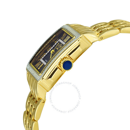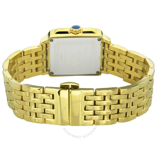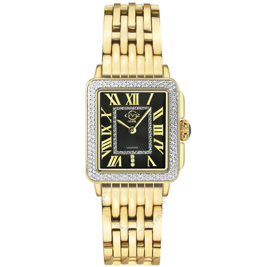 علبة وسوار من الفولاذ المقاوم للصدأ بلون الذهب الأصفر. إطار ثابت بلون الذهب الأصفر بقطع ماسي. ميناء أسود (قطع ماسي) بعقارب بلون الذهب الأصفر وعلامات ساعات بأرقام رومانية. نوع الميناء: تناظري. حركة كوارتز روندا عيار 762. زجاج ياقوت مقاوم للخدش. تاج قابل للسحب/الدفع. غطاء خلفي صلب. شكل مستطيل. حجم العلبة: 28.5 مم. سمكها: 9.5 مم. عرض السوار: 18 مم. مشبك قابل للطي بزر ضغط. مقاومة للماء حتى عمق 30 مترًا / 100 قدم. الوظائف: الساعات، الدقائق. سلسلة بادوفا. تصميم عصري. اسم الساعة: سويس موف. ساعة GV2 من جيفريل بادوفا كوارتز نسائية بمينا سوداء، 12313B.