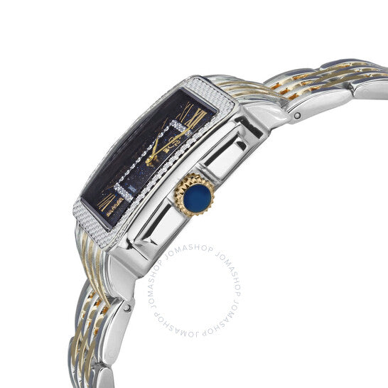 علبة من الفولاذ المقاوم للصدأ مع سوار من الفولاذ المقاوم للصدأ ثنائي اللون (فضي وذهبي أصفر). إطار ثابت فضي اللون مقطوع بالألماس. ميناء أزرق مع عقارب ذهبية على شكل سيف وأرقام رومانية وعلامات ساعات من الألماس. نوع الميناء: تناظري. حركة كوارتز. زجاج ياقوت مقاوم للخدش. تاج قابل للسحب/الدفع. غطاء خلفي صلب. شكل العلبة مربع. حجم العلبة: 28.5 مم. مشبك قابل للطي بزر ضغط. مقاومة للماء حتى عمق 30 مترًا / 100 قدم. الوظائف: الساعات، الدقائق. تصميم عصري. علامة الساعة: صناعة سويسرية. ساعة GV2 من جيفريل بادوفا كوارتز نسائية بمينا زرقاء مرصعة بالألماس، 12314B.