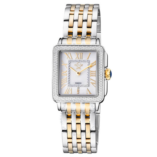 علبة من الفولاذ المقاوم للصدأ مع سوار من الفولاذ المقاوم للصدأ ثنائي اللون (فضي وذهبي أصفر). إطار ثابت من الفولاذ المقاوم للصدأ (مقطع بالماس). ميناء أبيض بعقارب ذهبية صفراء وعلامات ساعات بأرقام رومانية. نوع الميناء: تناظري. حركة كوارتز. زجاج ياقوت مقاوم للخدش. تاج قابل للسحب/الدفع. غطاء خلفي صلب. شكل مستطيل. حجم العلبة: ٢٧ مم. سمكها: ٩.٥ مم. عرض السوار: ١٨ مم. مشبك قابل للطي بزر ضغط. مقاومة للماء حتى عمق ٣٠ مترًا / ١٠٠ قدم. الوظائف: الساعات، الدقائق. سلسلة بادوفا. ساعة أنيقة. ساعة GV2 من جيفريل بادوفا للسيدات بمينا أبيض ١٢٣٠٤B.