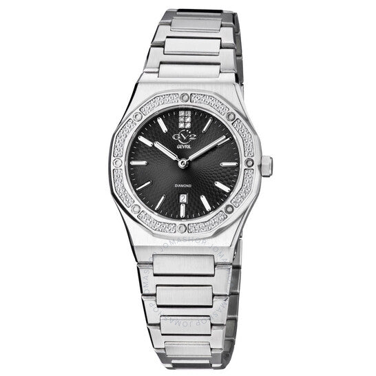 علبة وسوار من الفولاذ المقاوم للصدأ فضي اللون. إطار ثابت من الفولاذ المقاوم للصدأ فضي اللون. ميناء أسود بعقارب وعلامات ساعات فضية اللون. علامات دقائق حول الحافة الخارجية. نوع الميناء: تناظري. عقارب وعلامات مضيئة. عرض التاريخ عند موضع الساعة السادسة. حركة كوارتز. زجاج ياقوت مقاوم للخدش. تاج قابل للسحب/الدفع. غطاء خلفي صلب. شكل العلبة مثمن، مقاس العلبة: 33 مم، سمكها: 8 مم. عرض السوار: 14 مم. مشبك قابل للطي بزر ضغط. مقاومة للماء حتى عمق 50 مترًا / 165 قدمًا. الوظائف: التاريخ، الساعة، الدقائق. سلسلة بالمانوفا. تصميم عصري. علامة الساعة: صناعة سويسرية. ساعة GV2 من جيفريل بالمانوفا نسائية بمينا أسود 12707.