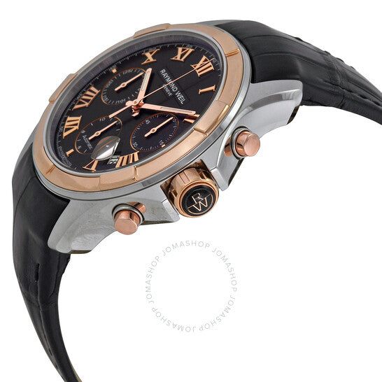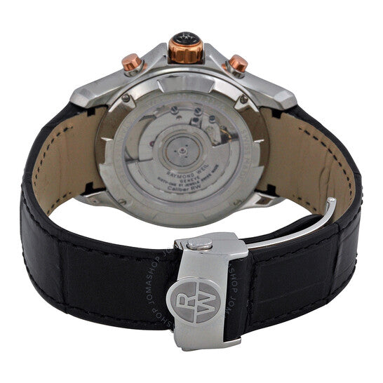 علبة من الفولاذ المقاوم للصدأ مع سوار أسود من جلد التمساح. إطار ثابت من الذهب الوردي عيار 18 قيراطًا. ميناء أسود بعقارب بلون الذهب الوردي وعلامات ساعات رومانية. علامات دقائق حول الحافة الخارجية. نوع الميناء: تناظري. عقارب مضيئة. عرض التاريخ بين موضعي الساعة الرابعة والخامسة. كرونوغراف - ثلاثة أقراص فرعية تعرض: 60 ثانية، 30 دقيقة، و12 ساعة. حركة أوتوماتيكية من ريموند ويل، عيار RW7310، مع احتياطي طاقة لمدة 42 ساعة. زجاج من الياقوت المقاوم للخدش. تاج لولبي. غطاء خلفي هيكلي. شكل دائري. حجم العلبة: 41 مم. سمكها: 12 مم. عرض السوار: 20.3 مم. طول السوار: 8 بوصات. مشبك قابل للطي بزر ضغط. مقاومة للماء حتى عمق 100 متر / 330 قدمًا. الوظائف: كرونوغراف، تاريخ، ساعة، دقيقة، ثانية. معلومات إضافية: مناسبة بشكل عام للسباحة والغطس السطحي، ولكنها ليست مناسبة للغوص السطحي. تصميم كاجوال. علامة الساعة: صناعة سويسرية. إصدارات المنتج: 7260 SC5 00208، 7260.SC5.00208، 7260SC500208. ساعة ريموند ويل بارسيفال كرونوغراف أوتوماتيكية للرجال 7260-SC5-00208.