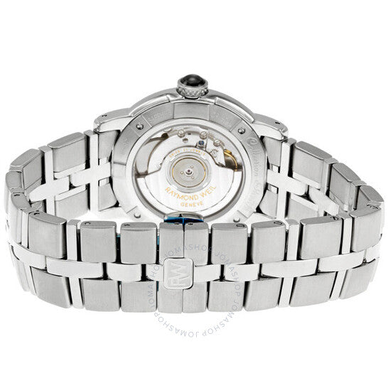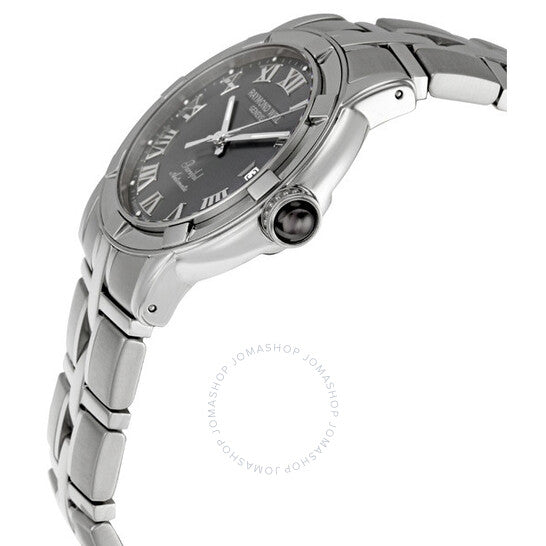 علبة من الفولاذ المقاوم للصدأ مع سوار من الفولاذ المقاوم للصدأ. إطار ثابت من الفولاذ المقاوم للصدأ. ميناء رمادي اللون مع عقارب فضية اللون وعلامات ساعات بأرقام رومانية. علامات دقائق حول الحافة الخارجية. عقارب وعلامات مضيئة. يظهر عرض التاريخ عند موضع الساعة الثالثة. حركة أوتوماتيكية. زجاج من الياقوت المقاوم للخدش. غطاء خلفي هيكلي. قطر العلبة: 39.5 مم. مشبك قابل للطي. مقاومة للماء حتى عمق 100 متر/330 قدمًا. الوظائف: الساعات، الدقائق، الثواني، التقويم. ساعة ريموند ويل بارسيفال أوتوماتيكية للرجال بمينا رمادي، 2841-ST-00608.