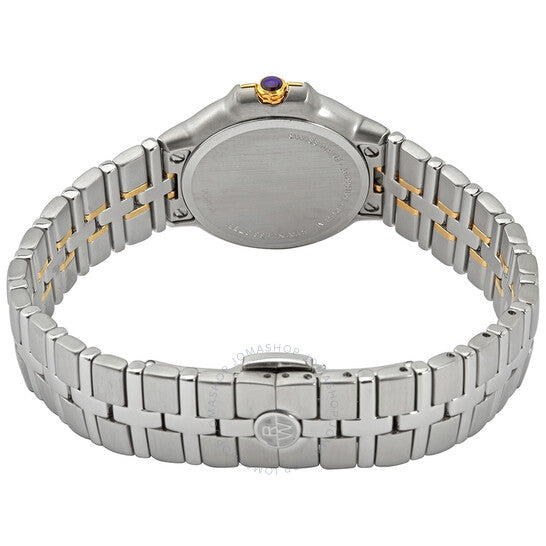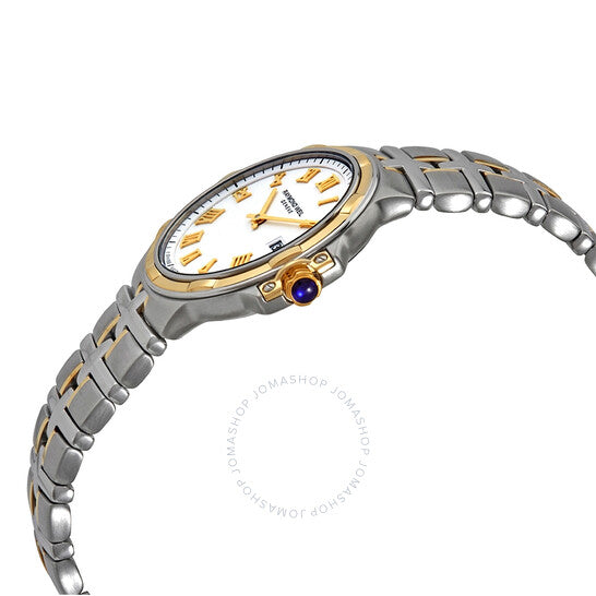 علبة من الفولاذ المقاوم للصدأ مع سوار من الفولاذ المقاوم للصدأ ثنائي اللون (فضي وذهبي أصفر مطلي بتقنية PVD). إطار ثابت من الفولاذ المقاوم للصدأ مع حلقة من الذهب الأصفر مطلية بتقنية PVD. ميناء أبيض بعقارب ذهبية اللون وعلامات ساعات رومانية. علامات دقائق حول الحافة الخارجية. نوع الميناء: تناظري. عرض التاريخ عند موضع الساعة 3. حركة كوارتز. زجاج ياقوتي مقاوم للخدش. تاج قابل للسحب/الدفع. غطاء خلفي صلب. شكل دائري. حجم العلبة: 30 مم. سمكها: 5.9 مم. قابلة للطي بمشبك أمان مزدوج. مقاومة للماء حتى عمق 50 مترًا / 165 قدمًا. الوظائف: التاريخ، الساعة، الدقيقة، الثانية. سلسلة بارسيفال. طراز ساعة رسمية. علامة الساعة: صناعة سويسرية. ساعة ريموند ويل بارسيفال نسائية بمينا بيضاء 5180-STP-00308.
