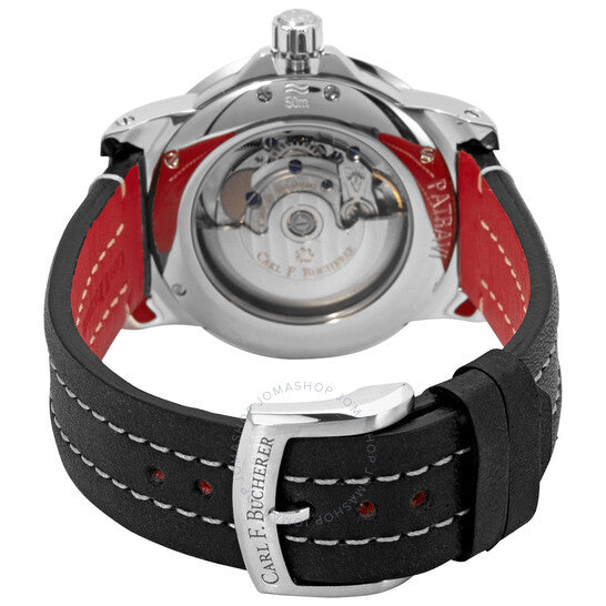 علبة فضية اللون من الفولاذ المقاوم للصدأ مع سوار جلدي أسود. إطار ثابت فضي اللون من الفولاذ المقاوم للصدأ. ميناء أسود بعقارب ومؤشرات ساعات فضية مضيئة. مؤشرات دقائق حول الحافة الخارجية. نوع الميناء: تناظري. عقارب ومؤشرات مضيئة. عرض التاريخ عند موضع الساعة 3. حركة أوتوماتيكية من كارل إف. بوخرر كاليبر CFB 1950، تحتوي على 26 جوهرة، تنبض بمعدل 28800 ذبذبة في الساعة، ولديها احتياطي طاقة يدوم حوالي 38 ساعة. زجاج ياقوت مقاوم للخدش. تاج لولبي. غطاء خلفي شفاف. شكل دائري، مقاس العلبة: 38 مم، سمكها: 11 مم. عرض السوار: 19 مم. مشبك تانغ. مقاومة للماء حتى عمق 50 مترًا / 165 قدمًا. الوظائف: التاريخ، الساعة، الدقيقة، الثانية. سلسلة باترافي. تصميم ساعة فاخرة. علامة الساعة: صناعة سويسرية. تنوعات المنتج: 166.117.6. ساعة كارل اف بوخرير باترافي أوتوماتيكية للرجال بمينا أسود 00.10617.08.33.01.