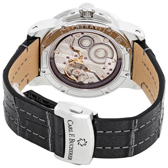 علبة من الفولاذ المقاوم للصدأ مع سوار من جلد التمساح بلون الفحم. إطار ثابت من الفولاذ المقاوم للصدأ. ميناء أسود من عرق اللؤلؤ مع عقارب فضية مضيئة وعلامات ساعات من الألماس والمؤشر. نوع الميناء: تناظري. عقارب مضيئة. عرض التاريخ بين موضعي الساعة ١٠ و١١. ميناء فرعي ٦٠ ثانية. حركة أوتوماتيكية من كارل إف. بوخرر، عيار CFB A1003، مع احتياطي طاقة ٥٥ ساعة. زجاج ياقوت مقاوم للخدش. غطاء خلفي شفاف. شكل دائري. حجم العلبة: ٣٨.٥ مم. سمكها: ١١.٨ مم. مشبك قابل للطي. مقاومة للماء حتى عمق ٥٠ مترًا / ١٦٥ قدمًا. الوظائف: التاريخ، الساعة، الدقيقة، الثانية. تصميم ساعة فاخرة. علامة الساعة: صناعة سويسرية. تنوعات المنتج: ١٦٦.٤٣٣.٥. ساعة كارل إف. بوخرر باترافي أوتوماتيكية نسائية ٠٠.١٠٦٣٠.٠٨.٨٧.٠١.