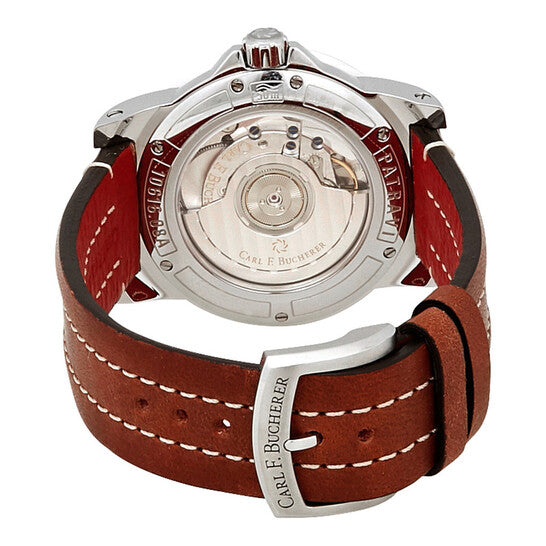 علبة من الفولاذ المقاوم للصدأ مع سوار جلدي بني. إطار ثابت. ميناء فضي اللون مع عقارب ومؤشرات ساعات فضية اللون. نوع الميناء: تناظري. عقارب ومؤشرات مضيئة. عرض التاريخ عند موضع الساعة 3. احتياطي طاقة واحد. حركة أوتوماتيكية من كارل إف. بوخرر كاليبر CFB 1961 باحتياطي طاقة يدوم حوالي 42 ساعة. زجاج من الياقوت المقاوم للخدش. تاج لولبي. حجم العلبة: 38 مم. شكلها دائري. الوظائف: التاريخ، الساعة، الدقيقة، الثانية، احتياطي الطاقة. طراز ساعة فاخرة. علامة الساعة: صناعة سويسرية. رقم الموديل: 166.141.6. ساعة كارل إف. بوخرر باترافي أوتوماتيكية للرجال باحتياطي طاقة 00.10616.08.13.01.
