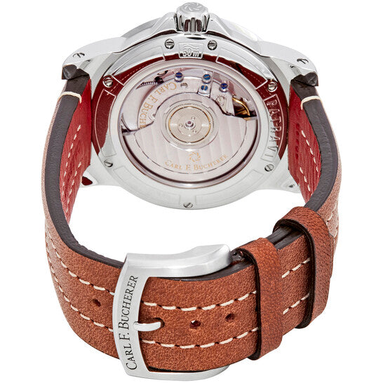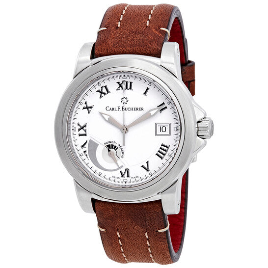 علبة من الفولاذ المقاوم للصدأ مع سوار جلدي بني. إطار ثابت. ميناء أبيض بعقارب فضية اللون وعلامات ساعات رومانية. علامات دقائق حول الحافة الخارجية. نوع الميناء: تناظري. عرض التاريخ عند موضع الساعة 3. ثانية واحدة - 60 ثانية. آلية حركة أوتوماتيكية. زجاج ياقوت مقاوم للخدش. تاج لولبي. حجم العلبة: 38 مم. شكلها دائري. مقاومة للماء حتى عمق 50 مترًا / 165 قدمًا. الوظائف: التاريخ، الساعة، الدقيقة، الثانية، احتياطي الطاقة. طراز ساعة فاخرة. علامة الساعة: صناعة سويسرية. رقم الموديل: 166.142.7. ساعة كارل إف. بوخرير باترافي الرجالية الأوتوماتيكية باحتياطي الطاقة 00.10616.08.21.01.
